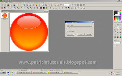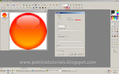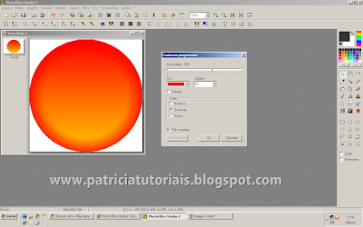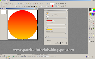 3- Vá em filtro/cor/gradiente e ajuste como na imagem abaixo (as cores é você que escolhe, ou seja, se você quiser uma bola vermelha, na cor 1 escolha o laranja mais forte