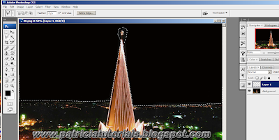 Com a ferramenta de "Seleção polygonal lasso tool", selecione toda a área que compreende o céu na foto.
