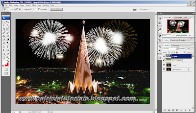 Agora, vamos aplicar um brilho nos fogos de artifício. Crie uma nova camada: